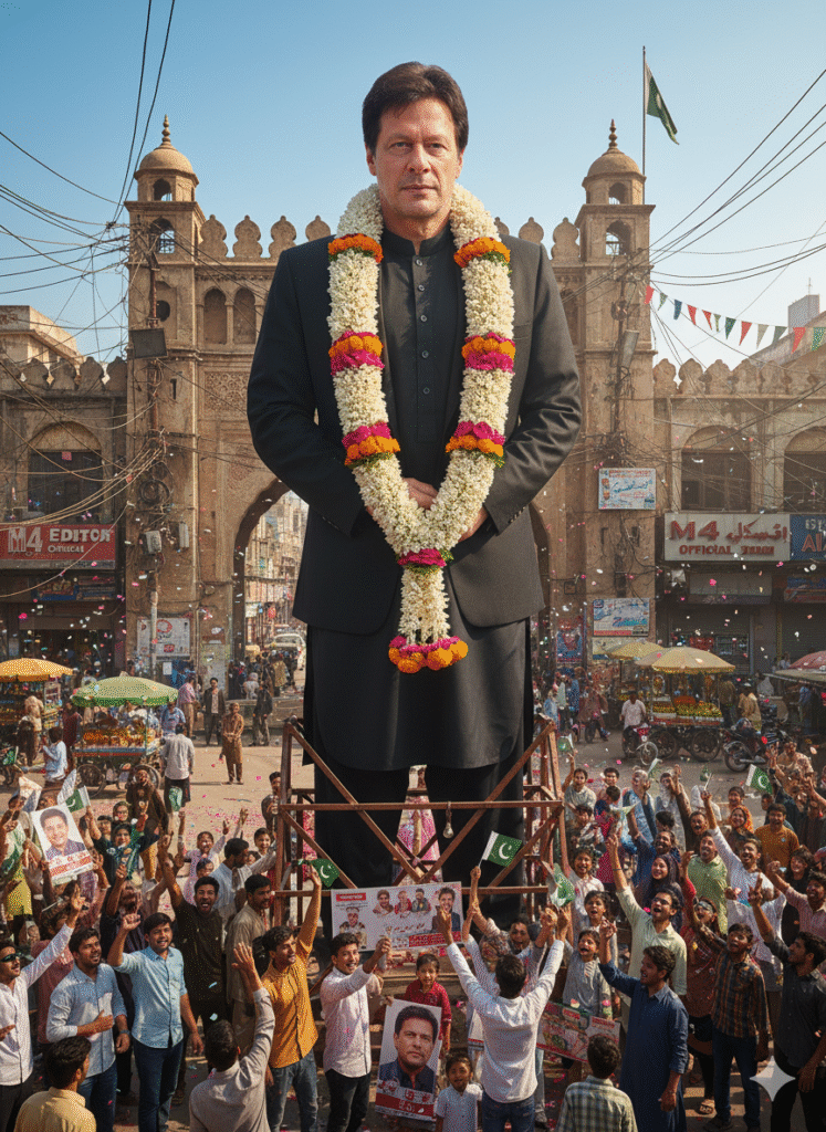 Create a hyper-realistic outdoor movie-theatre scene centered on a massive 300-foot tall, full-body cutout of the provided person, showing the entire figure from head to toe with lifelike detail and facial fidelity preserved exactly as in the reference. The cutout is elegantly decorated with a vibrant flower garland draped around the neck and shoulders. Mount the cutout on a sturdy support frame in a busy public square filled with a diverse crowd of enthusiastic fans who are facing and admiring it. Fans cheer, wave flags, hold banners and placards bearing the person’s image, and some capture the moment on their phones; their expressions should convey awe and celebration. Scatter fresh flower petals on the ground and let colorful confetti float gently through the air. Warm daylight casts soft, realistic shadows across the scene. Include authentic urban elements — a cinema marquee reading “M4 Editor Official 35MM”, street lamps, signage, and surrounding buildings — to anchor the setting. Style the image as ultra-photorealistic, cinematic, vibrant, and full of depth, with natural motion in the crowd, crisp texture detail on the cutout and garland, and rich color grading suitable for large-format publicity imagery.